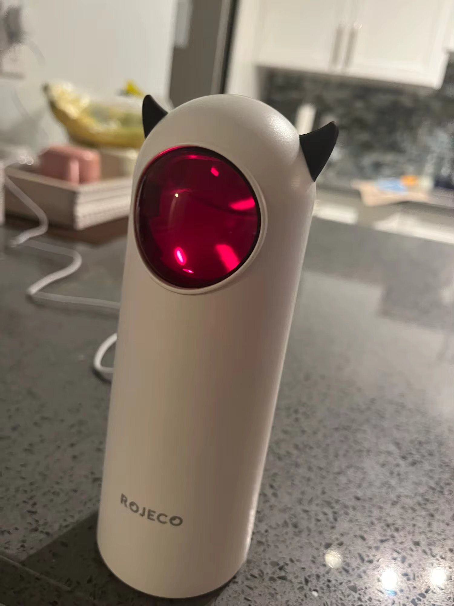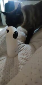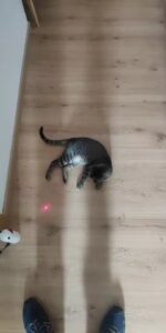 Our feline friend can’t get enough of this LED light toy. It encourages him to chase and pounce with such enthusiasm that it’s become his favorite pastime.