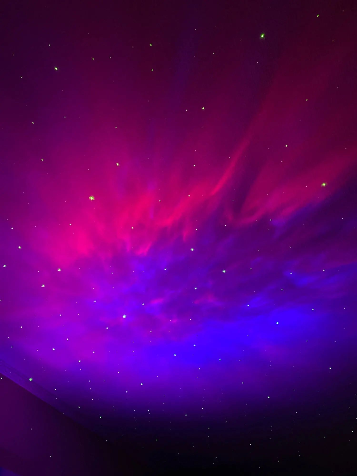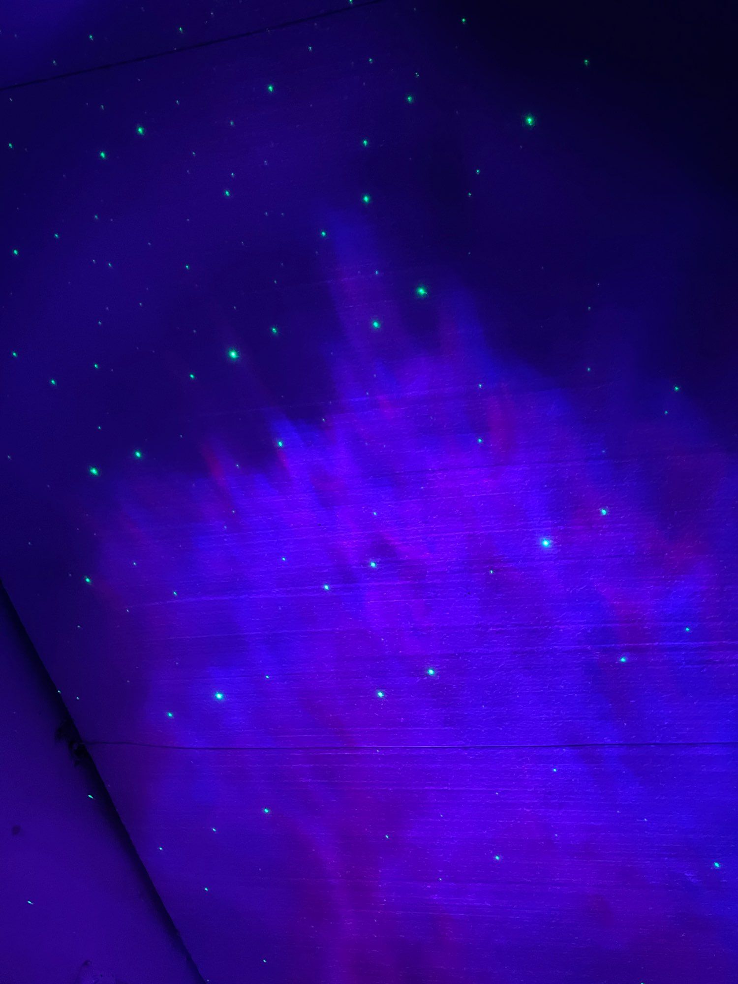 Looks super, and the nebulae move and you can change color, the stars are always green if they were white it would be perfect